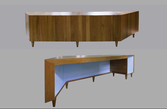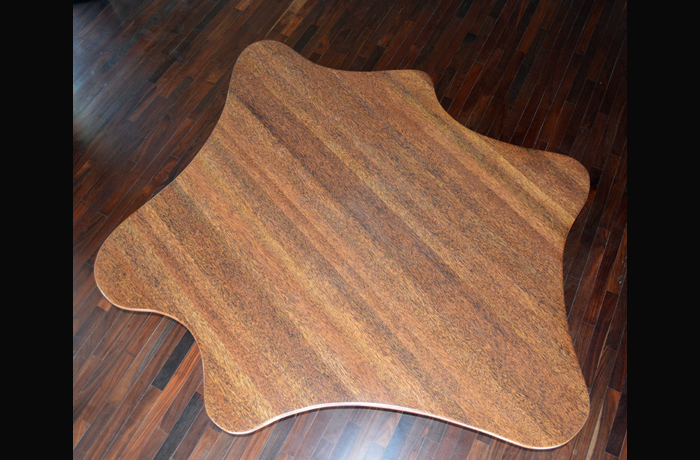 The non-orthogonal seating arrangement of the dining table encourages conviviality – diners do not turn 90° to talk to their neighbours when seated – or in the case of the Maua meeting table, informality.