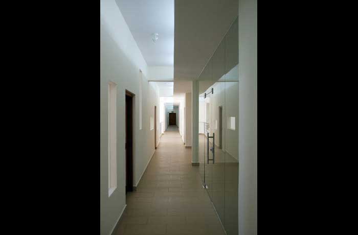 The two slots, the quiet landscaped zones, allow natural ventilation and light to the offices and the training and conference facilities at the front.