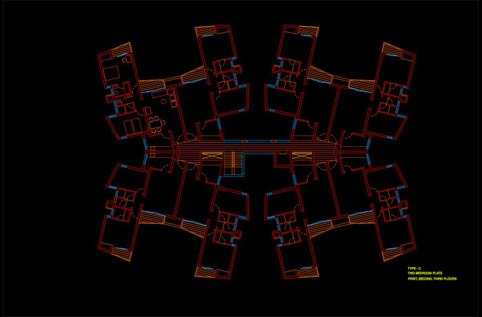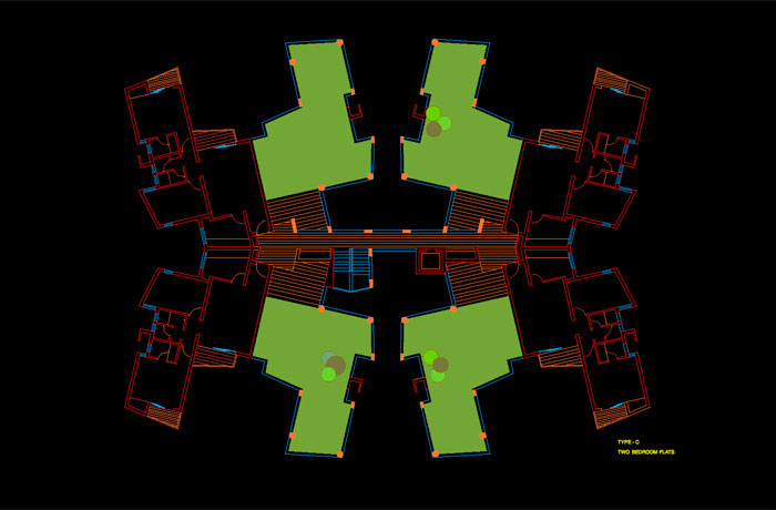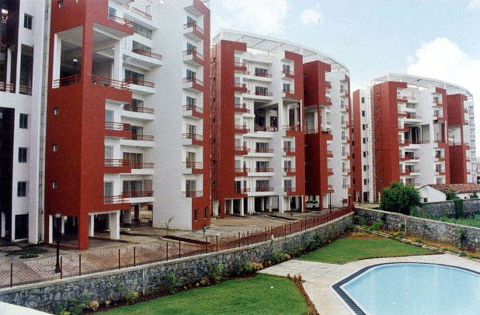 Design of 300 units (around 21,000 m2) of penthouses, terraced houses, one and two bedroom flats within 8 storied towers for Godrej Properties with the emphasis on climatic comfort within stringent cost limits. The east-west arrangement on site of the apartment blocks minimized solar gain. Nearly all the rooms had through ventilation. The fourth levels had planted open spaces for social gatherings.