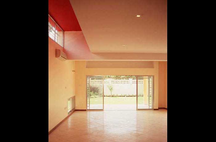 The L-shaped configuration of the house allowed for a large private garden with a pool at the rear. Windows were strategically located to prevent overlooking by the neighbour on one side. Site area: 800 square meters.