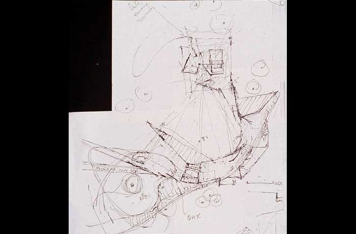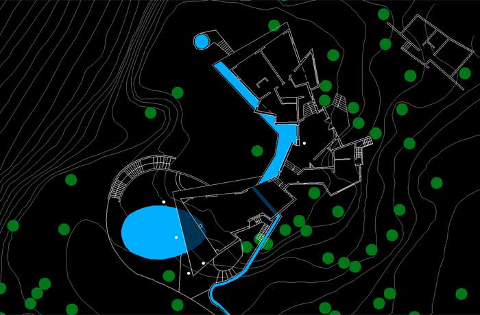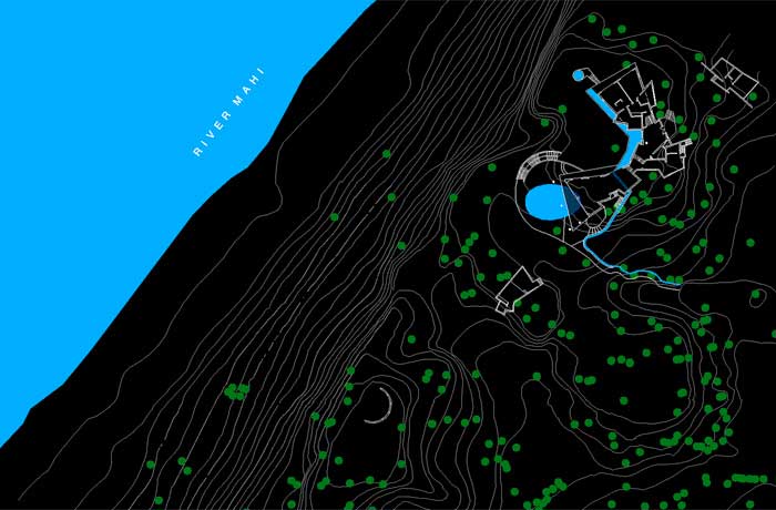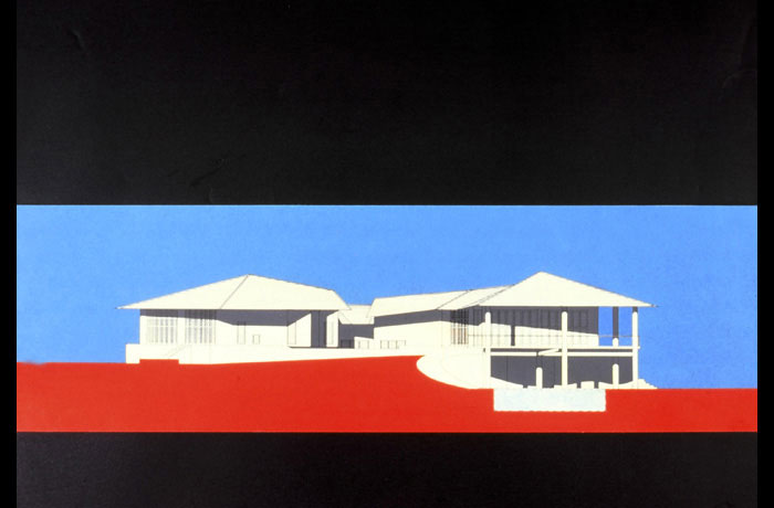 A house for the weekend designed around the existing trees to minimise solar gain. The stepped section took advantage of the existing levels so that views of river Mahi were possible from the two wings. The walls were angled to avoid the existing trees.