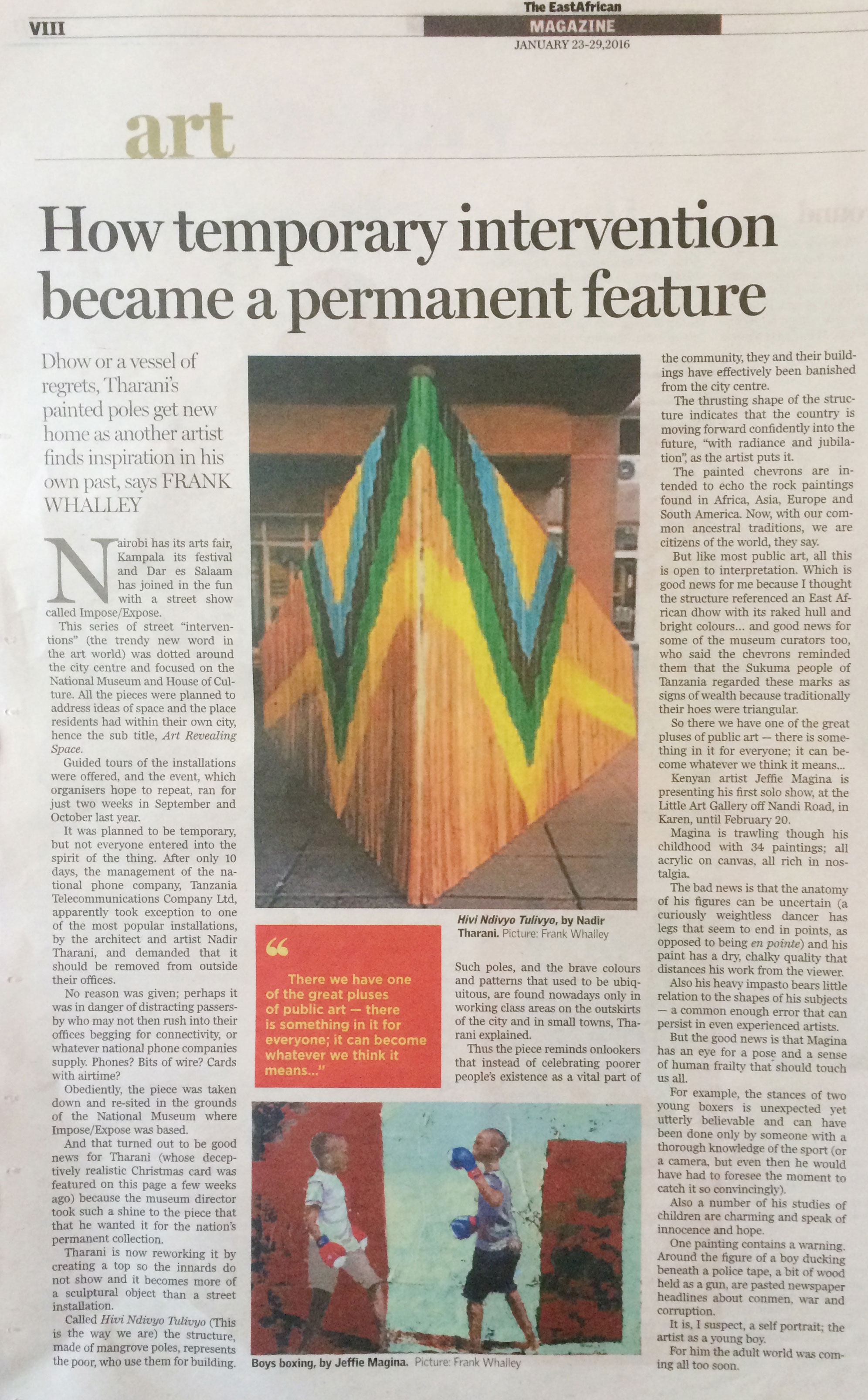 How temporary intervention became a permanent feature, The East African, 23 - 29 January 2016